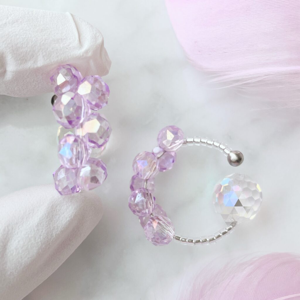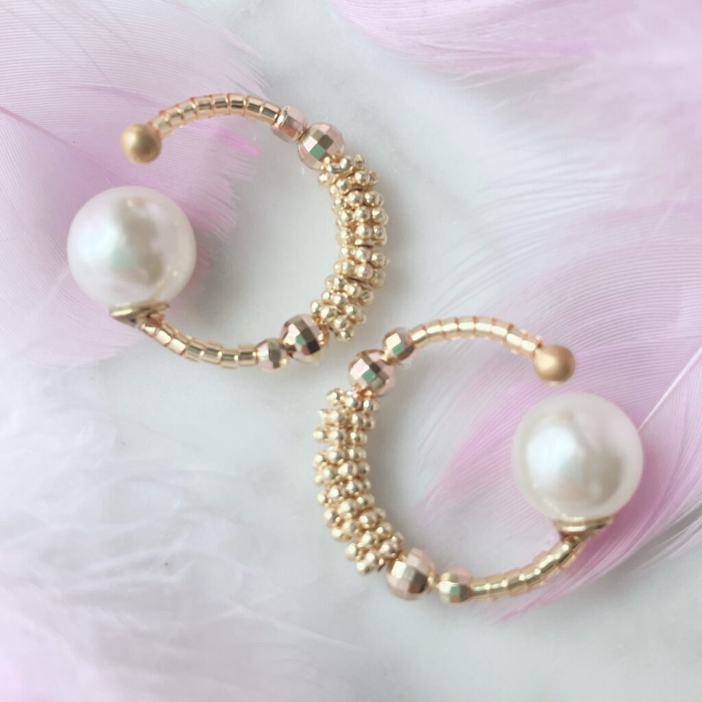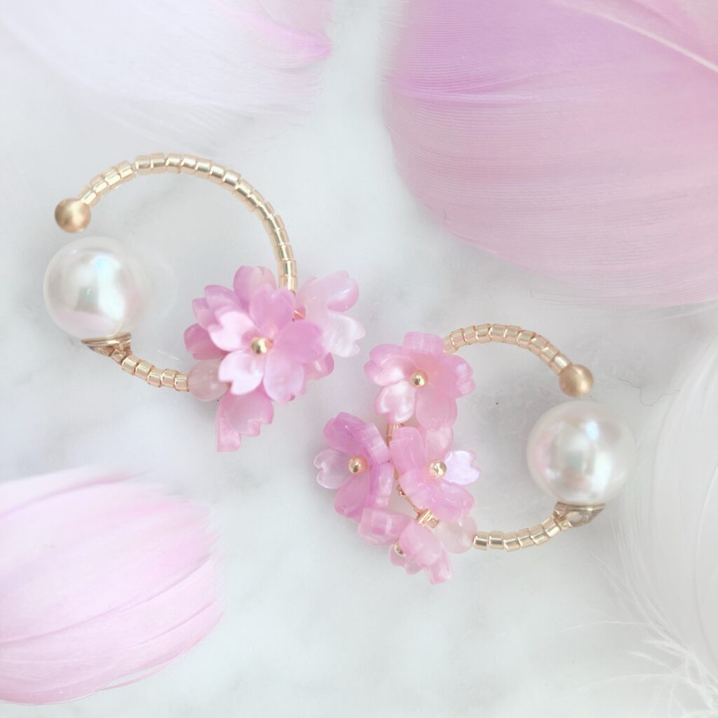 桜をモチーフにしたものや、柔らかい色合いのビーズや天然石を使ったものなど季節らしさを合わせることで、よりオシャレ見えします。